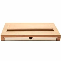 Alessiβs Sbriciola bread board makes cutting loaves neat, since crumbs will fall through the slits into a flat drawer. Whatβs more, the crumb collector also features a compartment for a bread knife. Designed by Anna and Gian Franco Gasparini, Sbriciola is made of bamboo and thermoplastic resin.
