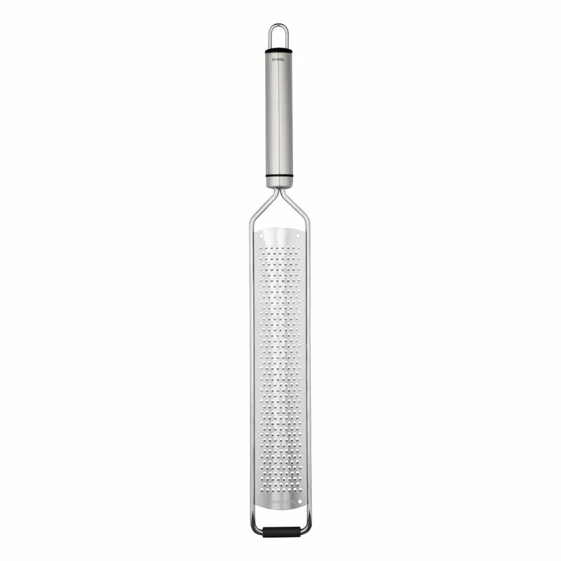 Heirol’s Steely grater has a fine blade that is ideal for grinding cheese, fruits and vegetables. The sturdy handle provides a firm grip, and the long, curved grating blade makes it easy to shred even tough vegetables. The Steely grater is made of high-quality steel and is also machine washable. The steel handle is filled with plastic to prevent dirt and water from getting inside, making the handle not only durable but also extremely hygienic.